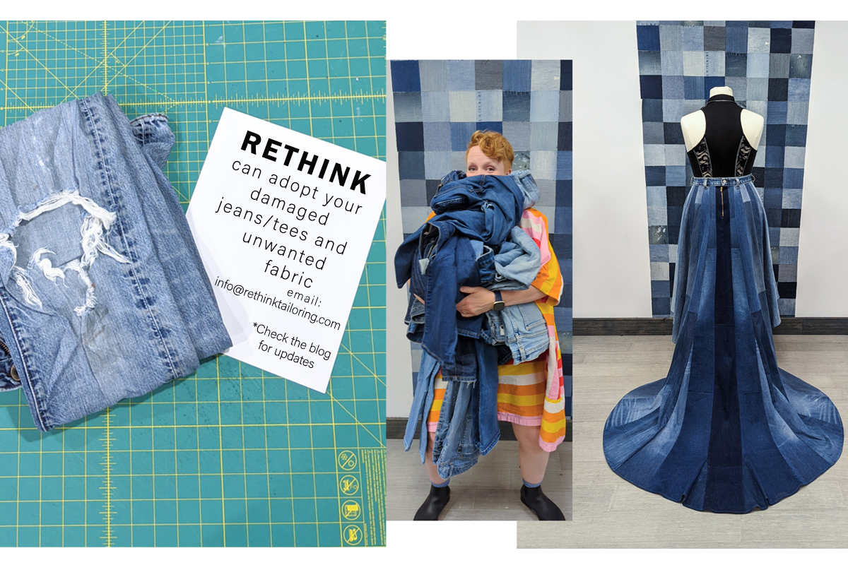 - Shop RETHINK’s upcycled designs online or email info@rethinktailoring.com to set up a shopping appointment at the studio)